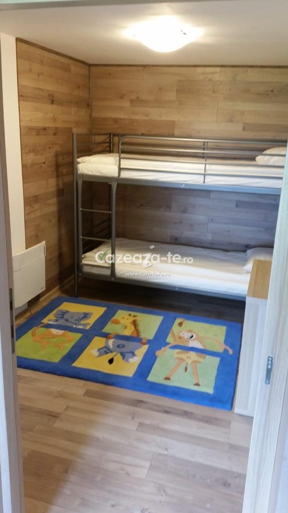 Aceasta camera spatioasa situata la parter va ofera atat un dormitor pentru parinti cu pat dublu matrimonial cat si un dormitor pentru copii cu paturi supraetajate unde acestia vor descoperi mici surprize(cutie cu jucarii, jocuri si carti de povesti).Camera are baie proprie cu articole de toaleta incluse si flat screen TV.